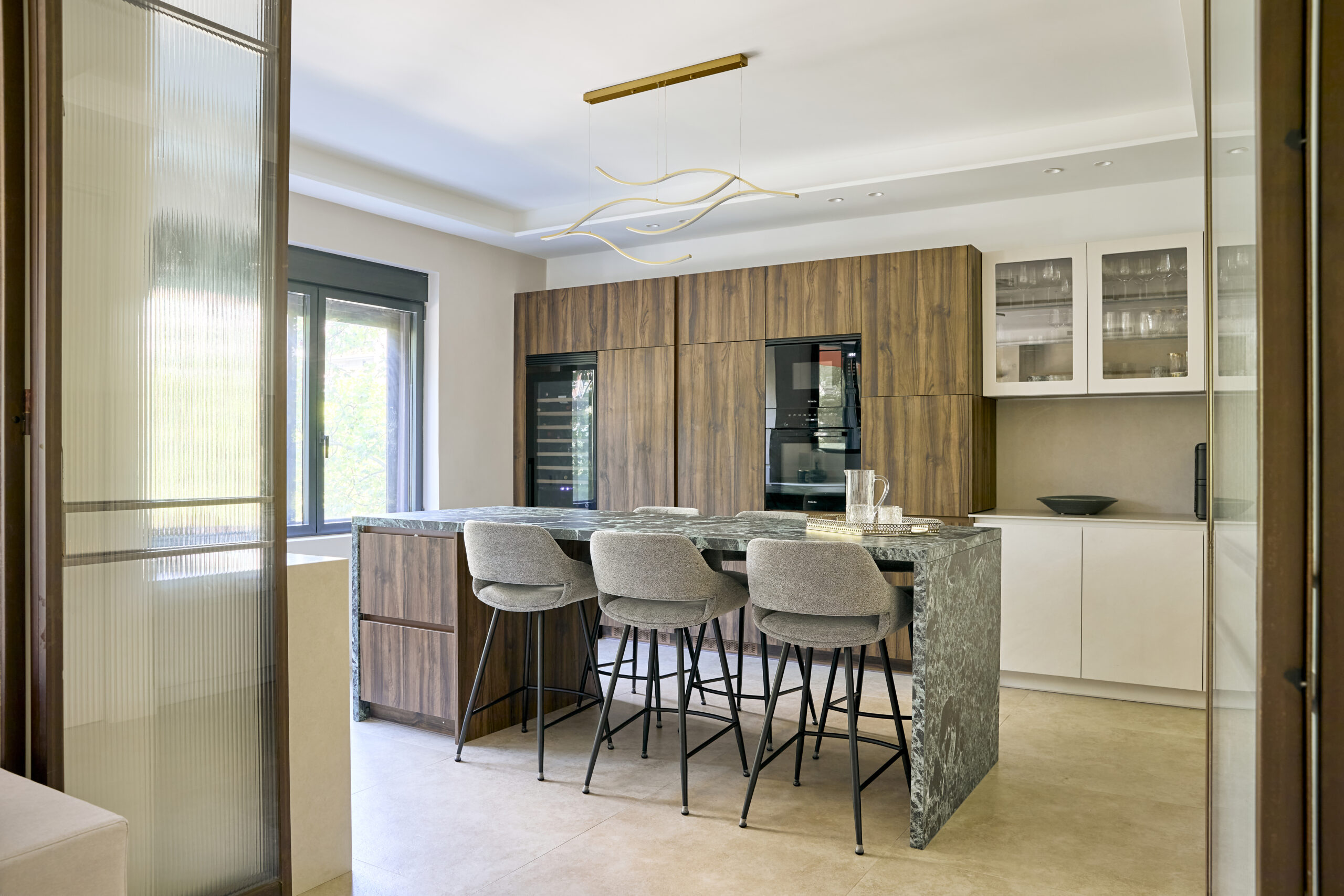 El resultado es una cocina que combina fuerza, equilibrio y funcionalidad, en la que cada elemento encuentra su lugar.