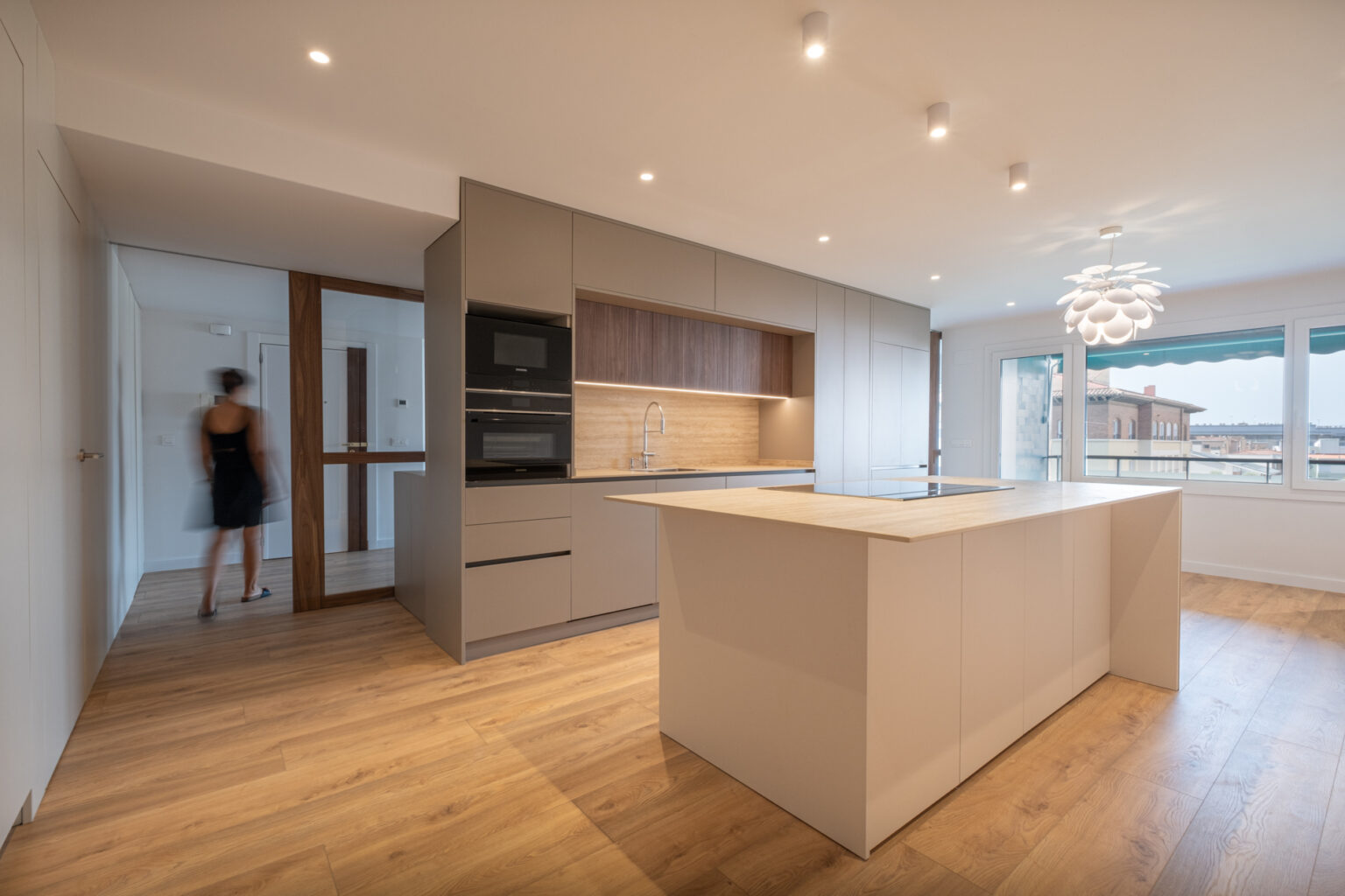 Esta decisión técnica y estética simplifica la lectura visual del espacio, aporta coherencia formal y amplifica la percepción de amplitud. Además, facilita una ejecución más precisa en proyectos de reforma integral.